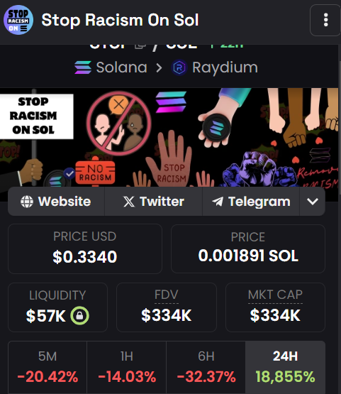 Stop Racism on Solana. Source: DexScreener