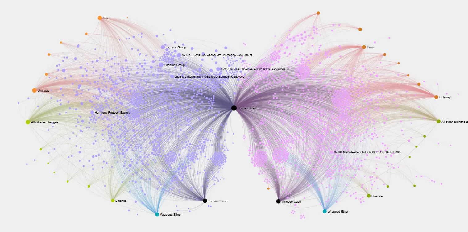 Tornado Cash has received warnings for carrying traffic from DPRK exploits and hacks. However, the mixer has already spread to a large part of the Ethereum ecosystem, through general usage or even ‘dusting’ from dedicated wallets.