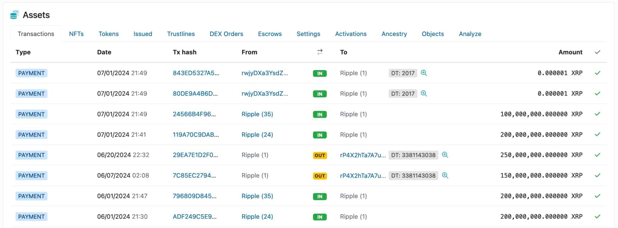 As developed, ‘Ripple (24)’ first sent the 200 million XRP for July’s sell-off to ‘Ripple (1)’. Later, the account sent 300 million tokens to ‘Ripple (12)’ and re-locked the amount for an escrow to November 2027.