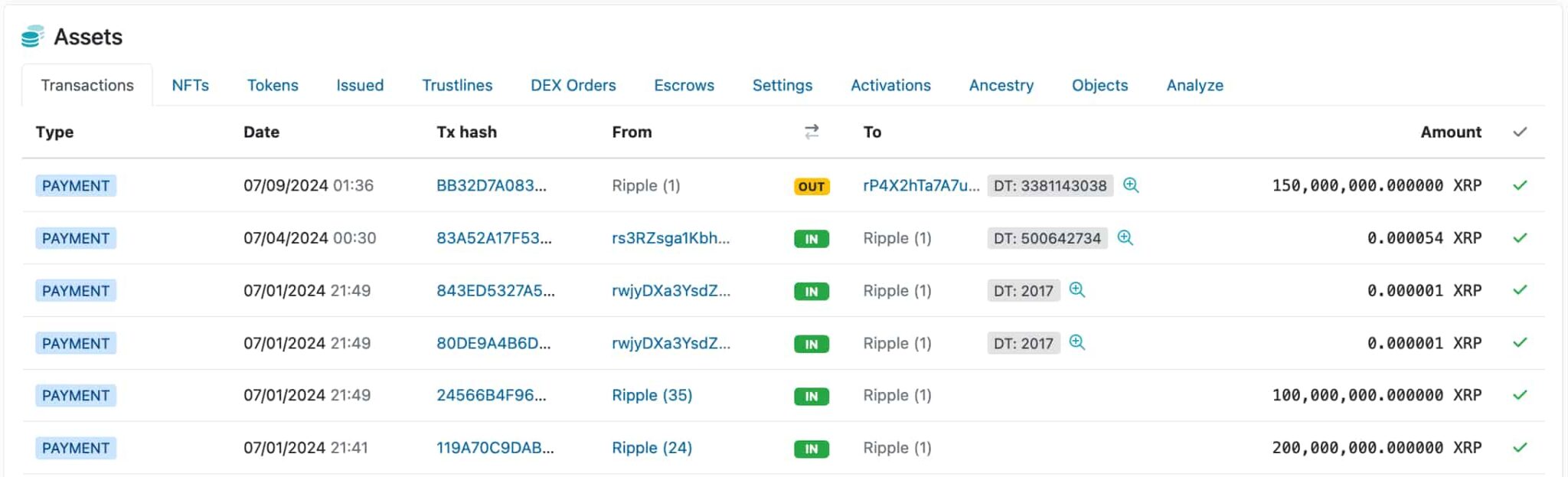 So far, 100 million tokens still remain in the ‘rP4X2hTa’ account. However, 50 million are already left to ‘rhWt2bhR‘, another usual intermediary address, before landing in cryptocurrency exchanges, as has happened in previous months.