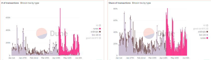 Runes Dethrone BRC-20 and Ordinals as Protocol Transactions Surge