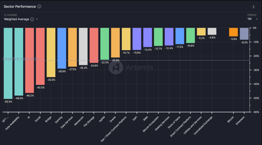 Non-fungible tokens (NFTs), once hailed as the future of digital collectibles, experienced a sharp downturn in June. According to the crypto analytics platform Artemis, the NFT sector recorded the worst performance among 21 sectors, with a staggering 51.5% decline.