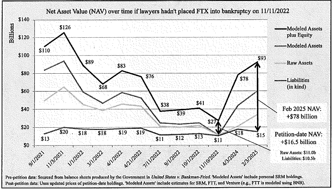 Net Asset Value over time if lawyers hadn’t placed FTX into bankruptcy. Source: Courtlistener