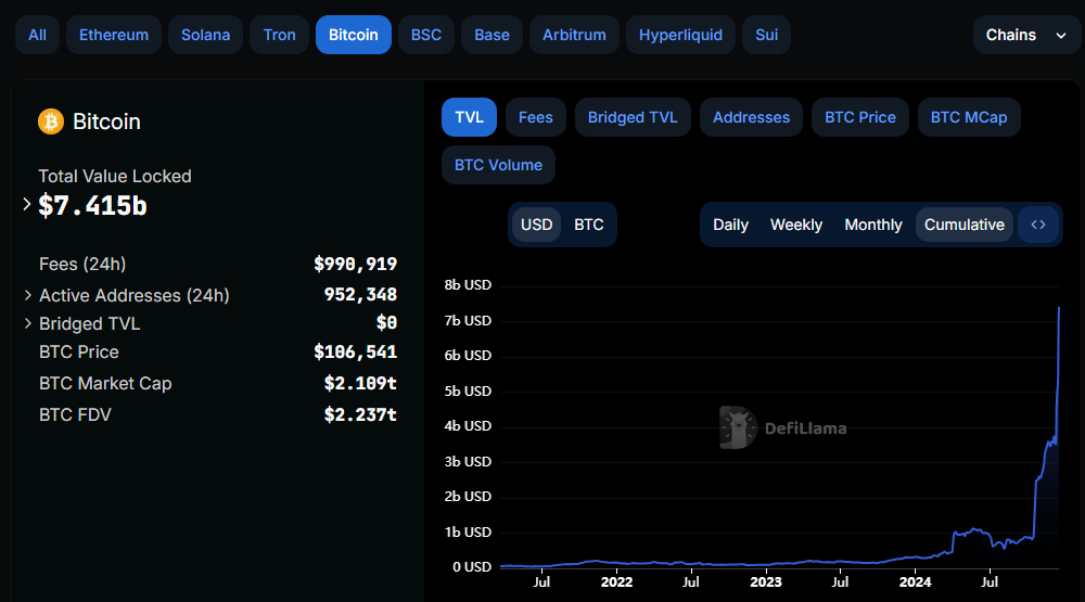 Bitcoin TVL. Source: DefiLlama