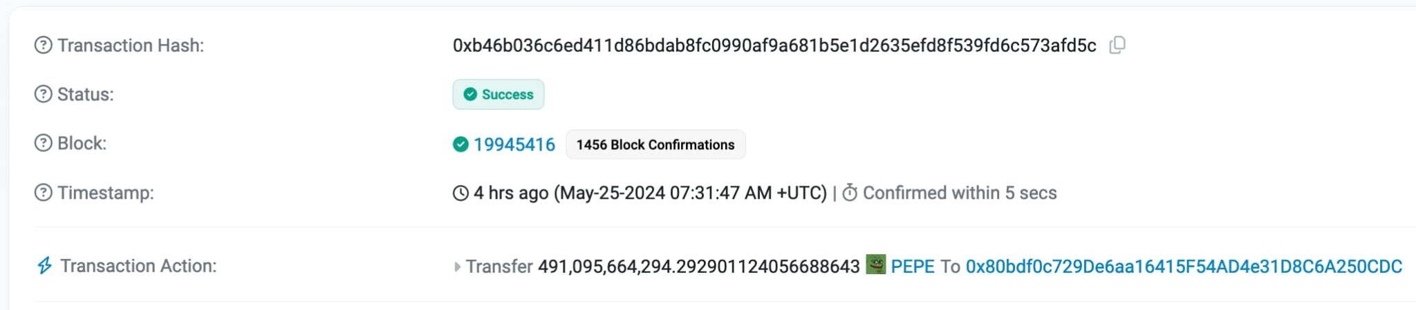 As of this writing, the account still holds 476.8 billion PEPE, worth approximately $7.48 million.
