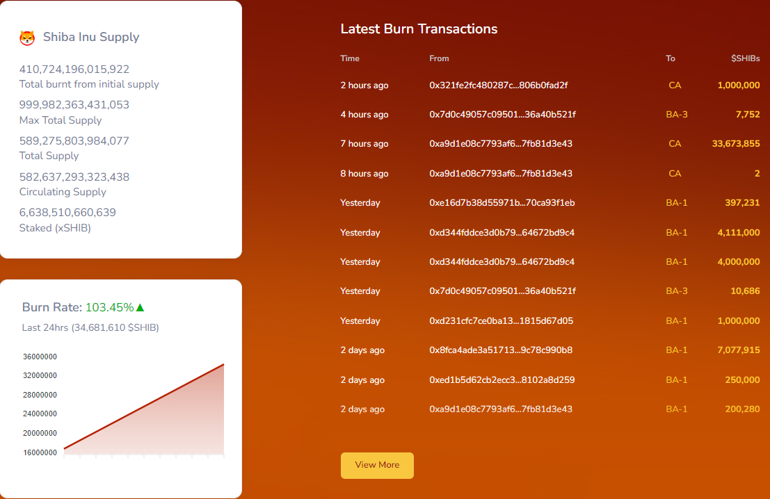 Shibburn meme crypto tracking platform has revealed data about the Shiba Inu burns that have taken place within the period of the last 24 hours. These figures have revealed that the SHIB community has succeeded in burning a total of 34,681,610 SHIB, increasing the burn rate by 103.45%.