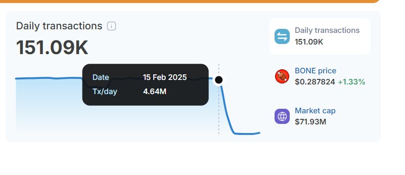 Data from ShibariumScan shows that Shibarium has a daily transaction count of 151,090. This represents a 96.83% decline from the 4.77 million transactions recorded just seven days ago on February 14.