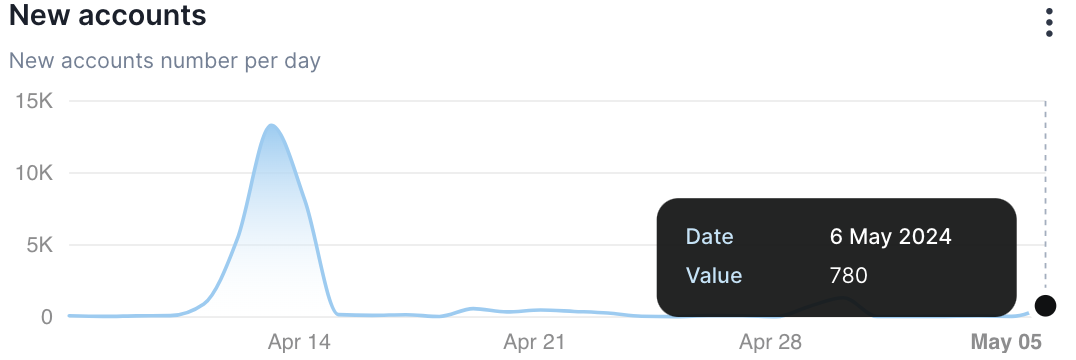 The data, sourced from Shibariumscan, reveals an unprecedented spike as the network welcomed 780 fresh accounts, a stark contrast to the 45 recorded just the day before.