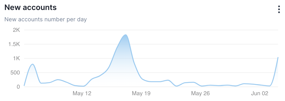 At the same time, if we judge by the figure of active accounts for the period in question, it grew by 1,243 accounts per day, which means that all transaction activity on Shibarium was provided by new users.