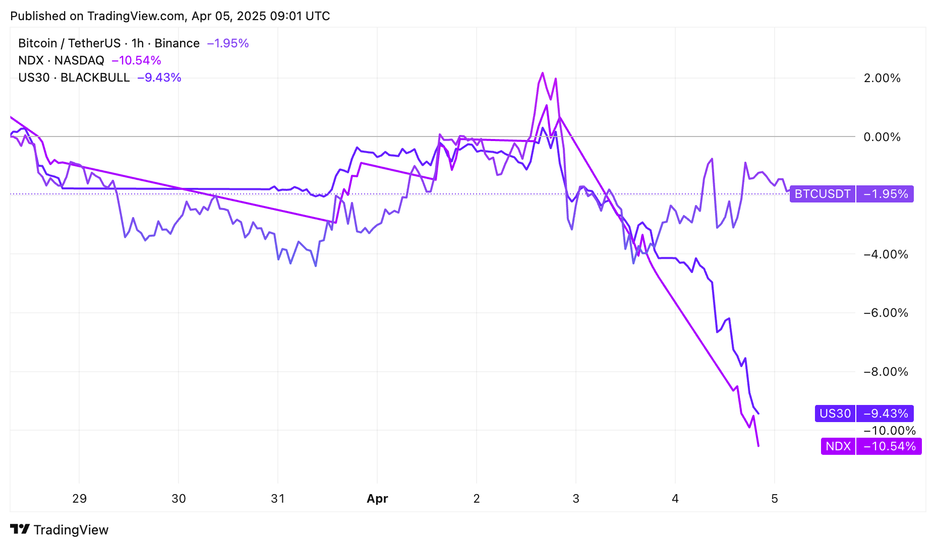 After Donald Trump announced his Liberation Day tariffs, Bitcoin and most altcoins outperformed stocks.