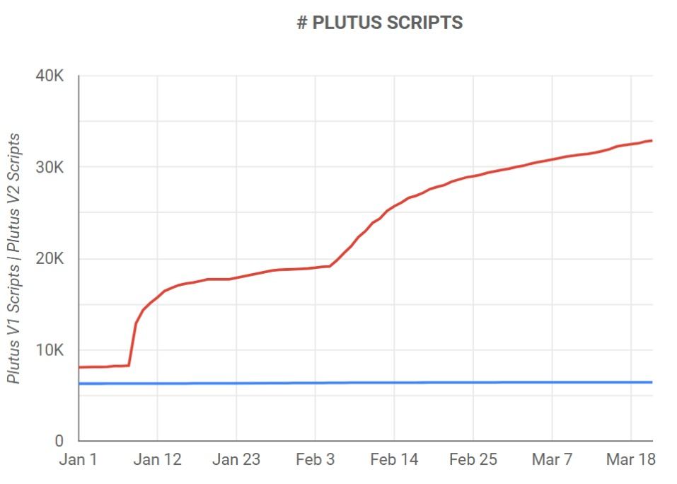 Data from Cardano Blockchain Insights shows a remarkable increase of over 170% in Plutus scripts, the network’s language for building smart contracts, since the beginning of the year.