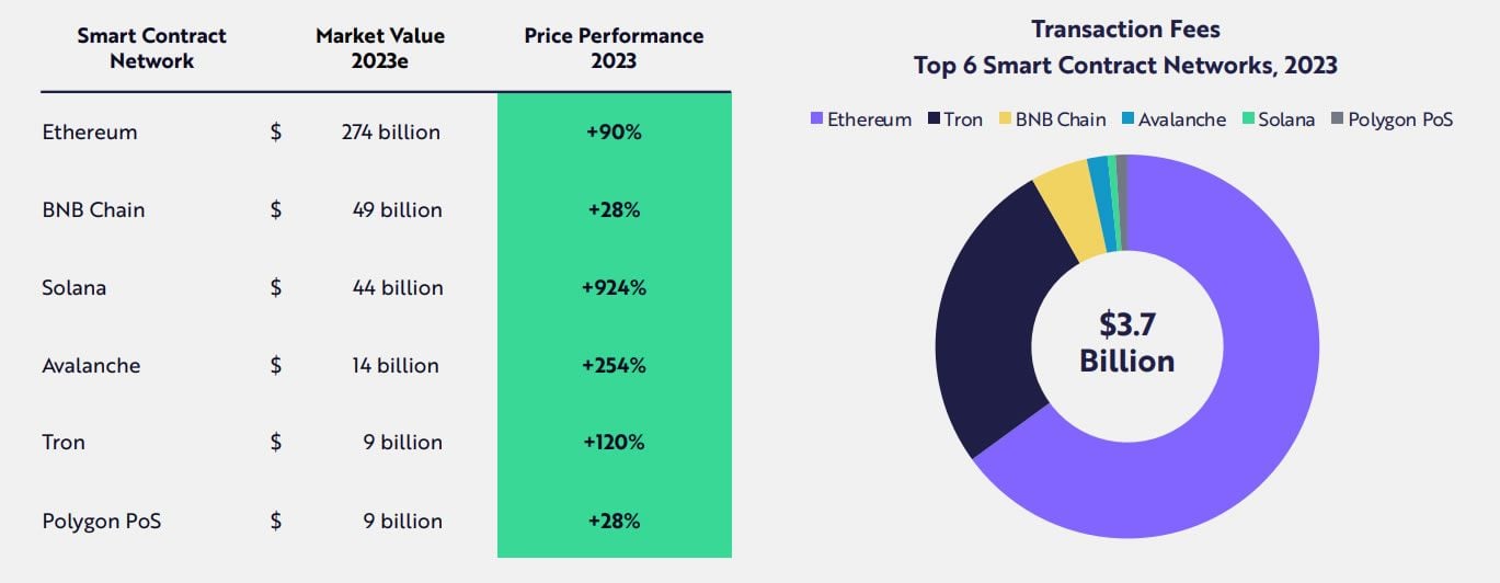 Smart contract network market value and fees, 2023. Source: Ark Invest