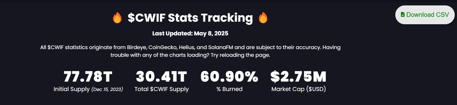 Through this process, CWIF has burned over 47 trillion tokens, representing 60.9% of its initial supply. Currently, the total supply stands at 30.41 trillion, with 30.4 trillion tokens in active circulation.
