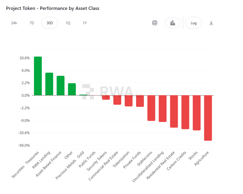 More exotic RWA classes have the biggest losses, in addition to low activity. Agriculture, commercial real estate, carbon credits, and private loans have incurred losses. Tokenized equities, while in-demand for trading, are also a riskier asset class.