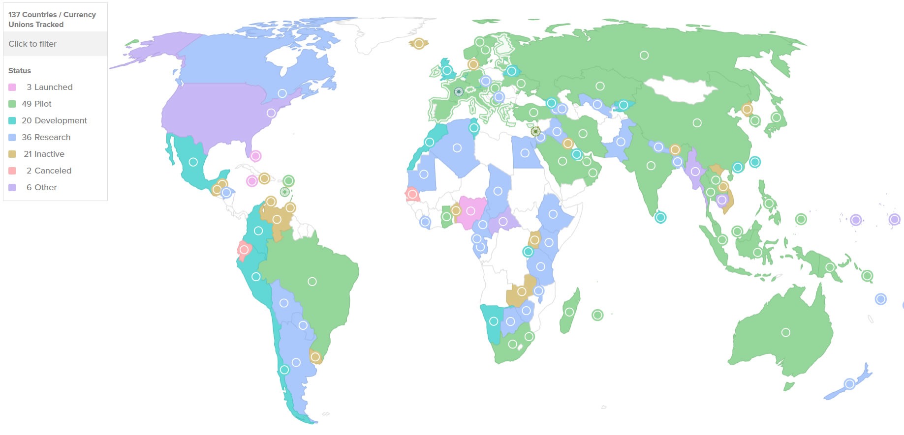 Only three countries have officially launched a CBDC: Nigeria, Jamaica and The Bahamas, according to the Atlantic Council CBDC Tracker.