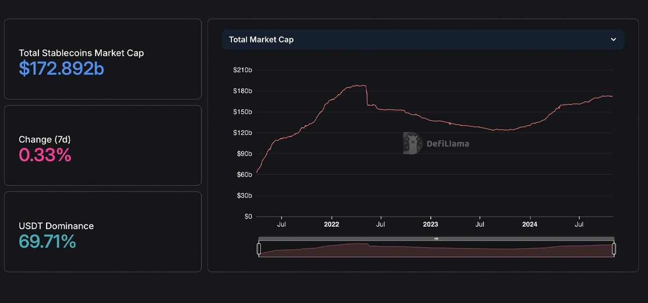 According to the latest data, the stablecoin economy now holds a value of $172.892 billion, with October adding $555 million to the fiat-pegged token market.