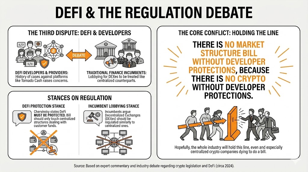 Jake Chervinsky highlights three major issues: the stablecoin yield dilemma, government involvement in crypto, and protections for decentralized finance (DeFi). -