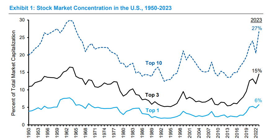 (The number of companies in the S&P 500 fell after the dot com boom leading to fewer and larger firms like Google and Apple dominating the index’s overall market capitalization / Morgan Stanley)