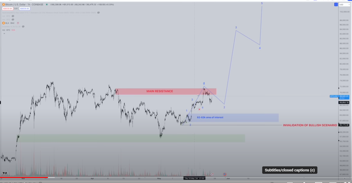 According to the analyst, Bitcoin’s recent move from $60,000 to above $70,000 may have been the first wave of the rally with the correction down to $66,000 serving as the wave-two correction.