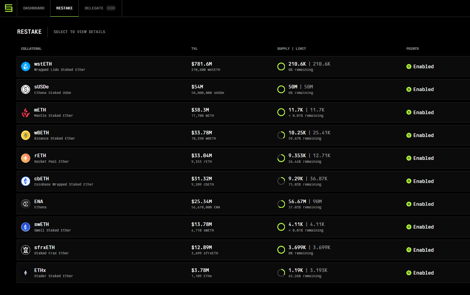 However, I remain available for the restaking pool denominated in wBETH, rETH, cbETH, ENA, and ETHx.