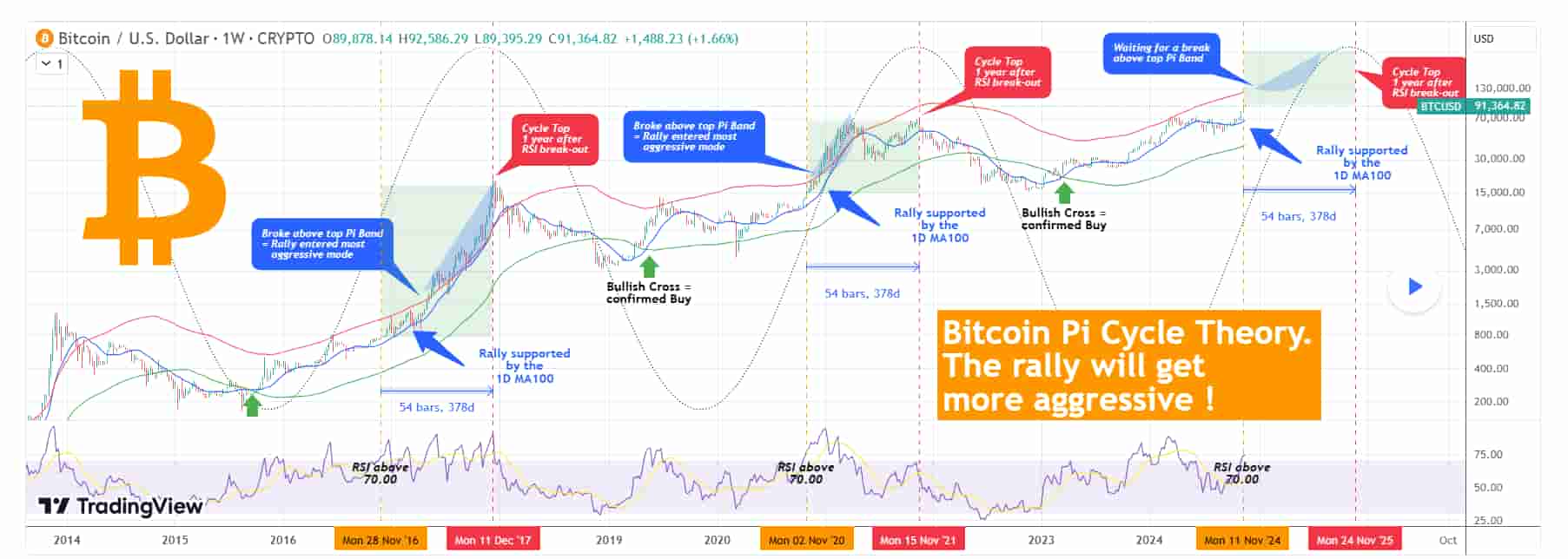 In a recent TradingView post, TradingShot highlighted that Bitcoin’s price action is closely aligned with historical patterns, particularly the Pi Cycle theory, which has proven remarkably consistent in predicting Bitcoin’s long-term trends.