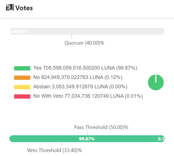 The 99.87% supporting votes underscores the community’s participation in preventing attacks on Terra’s chain. Moreover, 55 of the 56 partaking validators voted YES for the proposal.