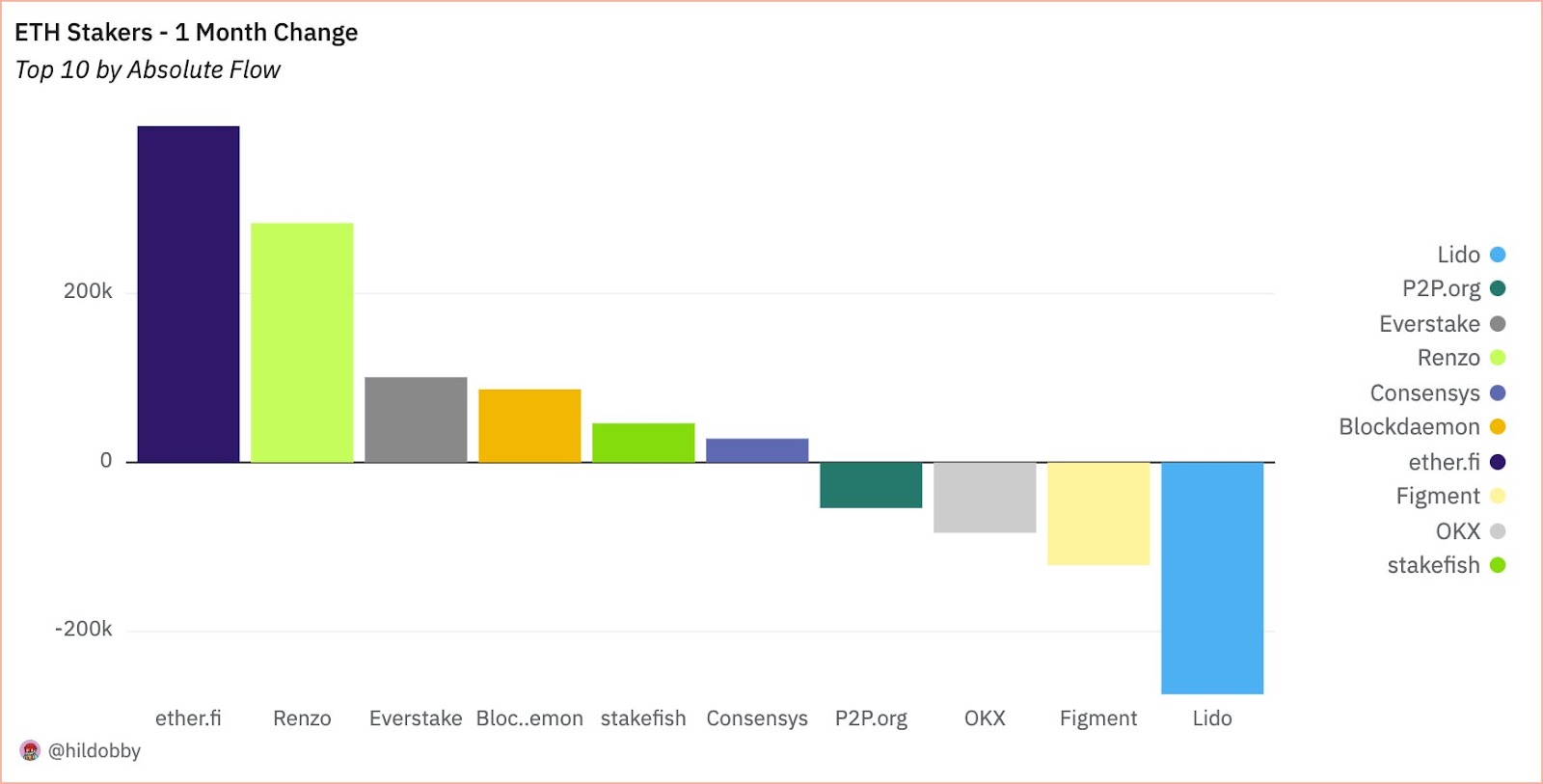 Only the competitor platform Ether.fi has managed to do better with 437,000 ETH.
