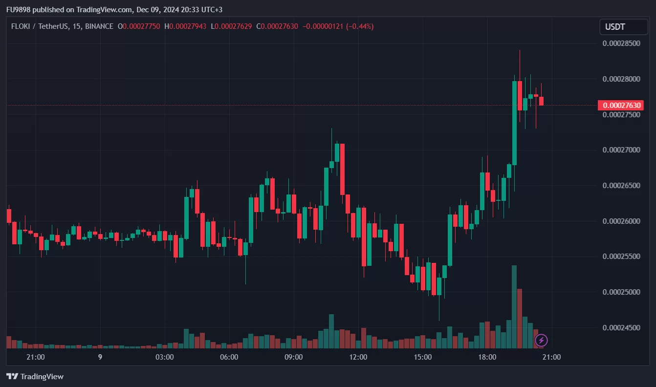 Following the announcement, the FLOKI price rose by approximately 4%.