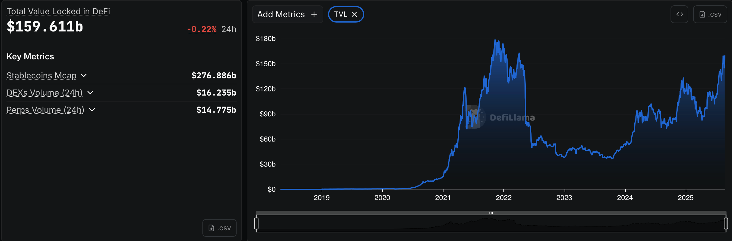 Total value locked (TVL) in DeFi on Aug. 25, 2025.