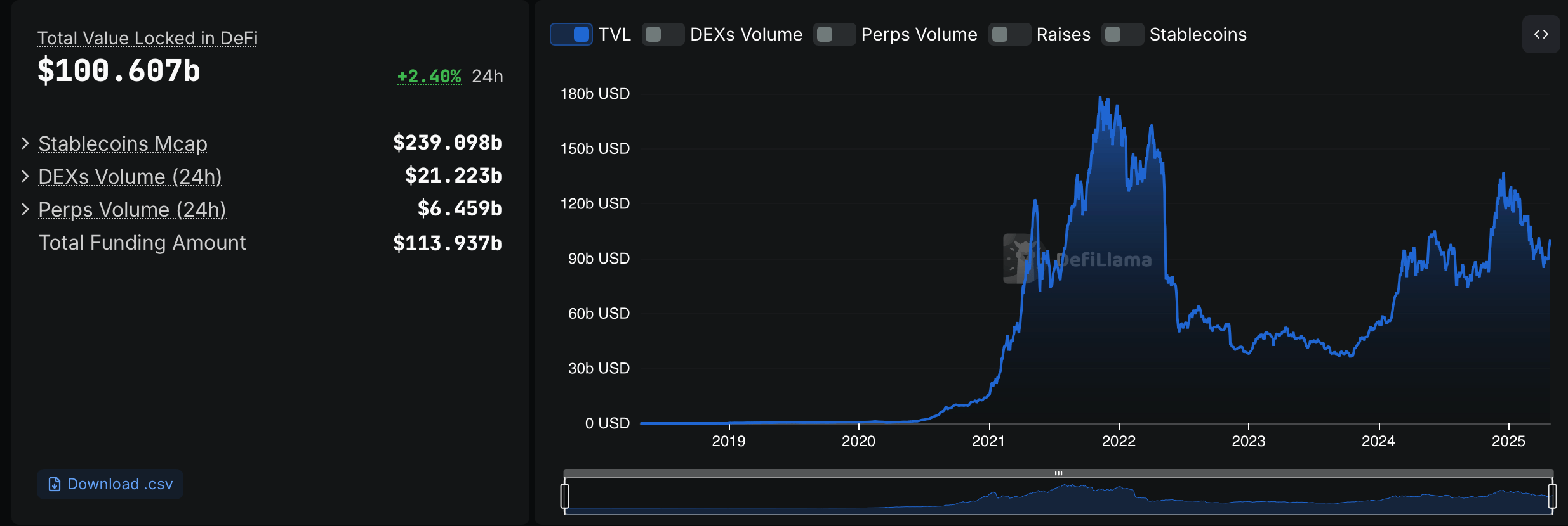 According to recent figures, the total value locked in decentralized finance (DeFi) has once again exceeded the $100 billion threshold, a level not glimpsed since the final week of March.