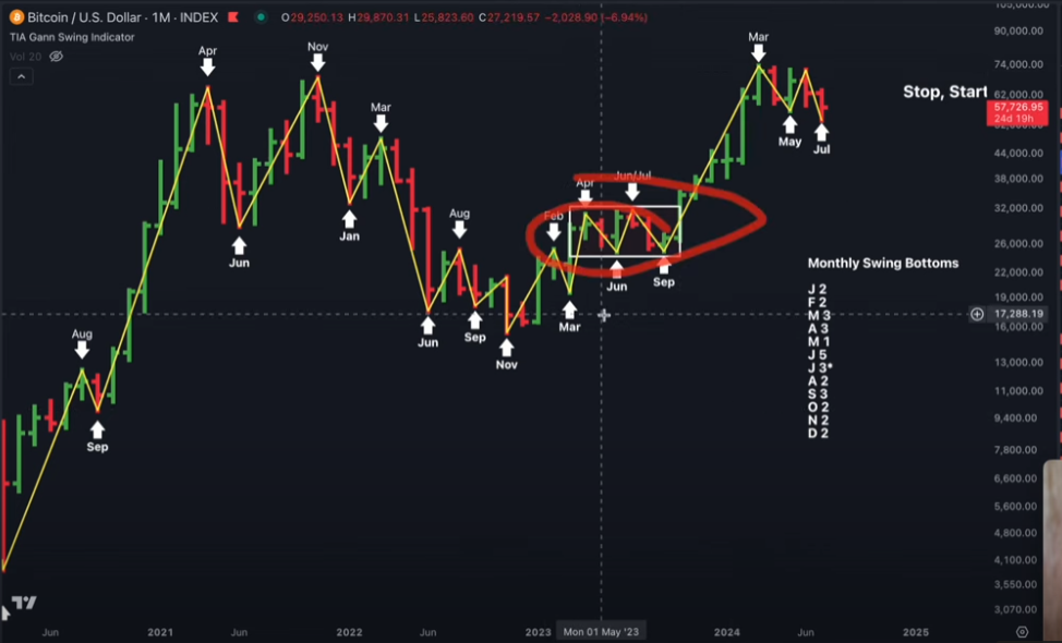 In a new strategy session, analyst Jason Pizzino tells his 330,00 YouTube subscribers that Bitcoin’s consolidation since March is reminiscent of its price action last year when BTC witnessed mostly sideways price action for six months before igniting a 3X ascent.