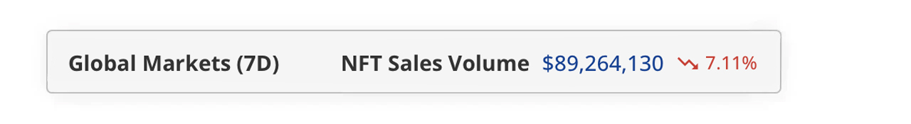 This week’s total NFT sales clocked in at $89.26 million—a dip of 7.11% from last week’s numbers. Despite this decline, NFT buyer numbers surged by 42.20%, while the pool of digital collectible sellers grew by 52.55%.