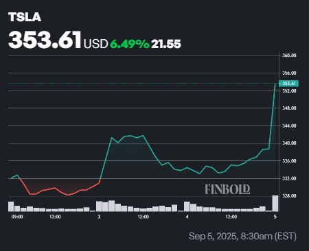 By press time, TSLA stock was trading at $354, up about 4.5% for the day.
