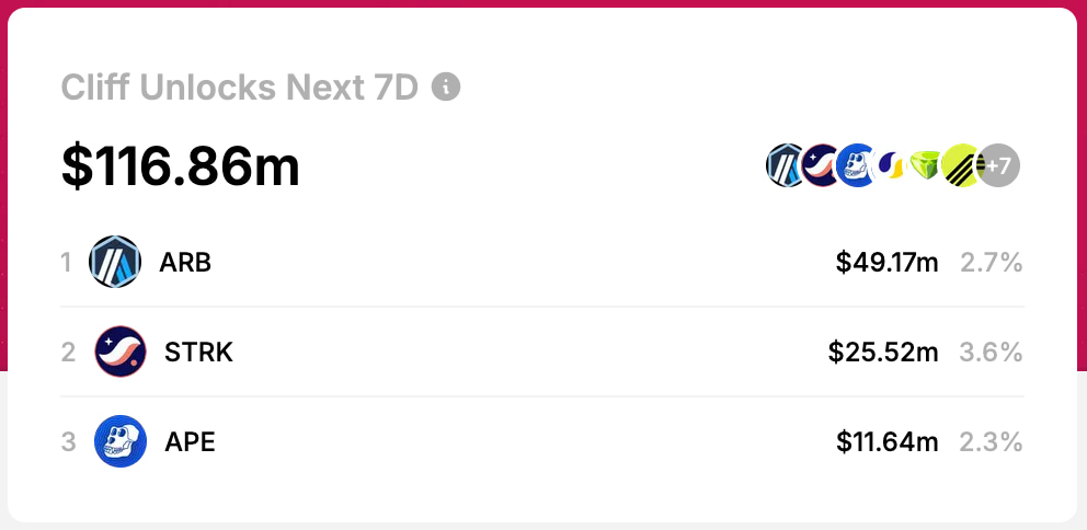 This week, two popular Ethereum L2s will unlock nearly $100 million worth of tokens, according to retrieved data from TokenUnlocksApp.