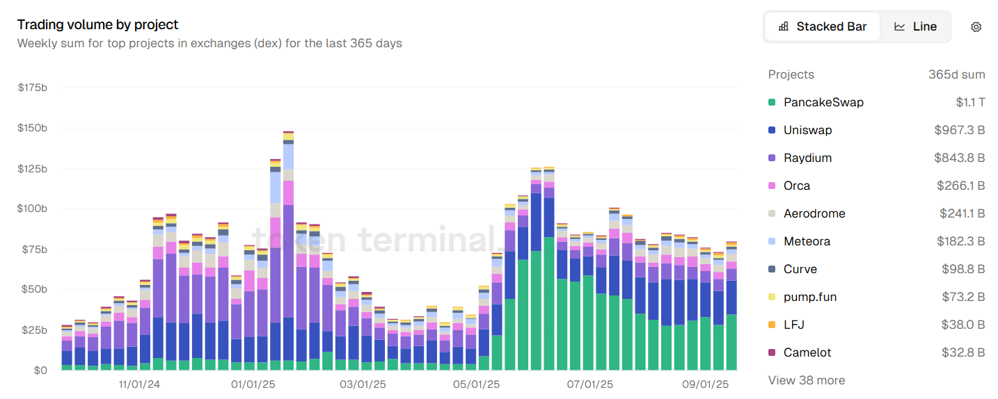 Top DEXs by trading volume. Source: Token Terminal