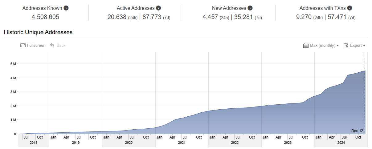 VeChain accrued more than 4.5M known wallets, while also growing its node ecosystem. | Source: VeChain Stats