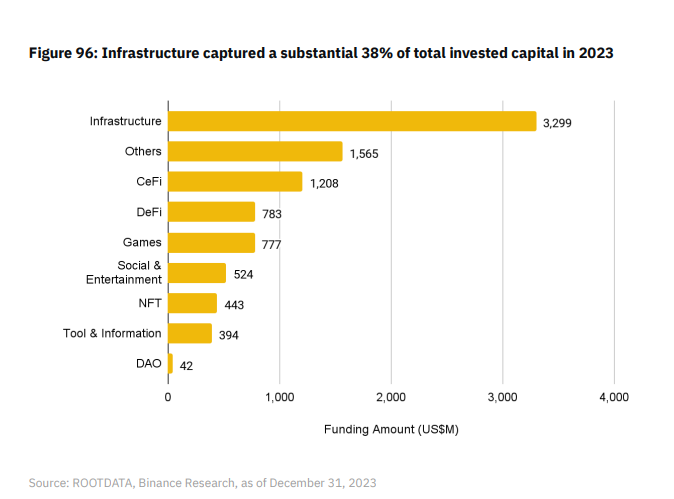 Meanwhile, the study findings show that Web3 projects attracted investments totaling $9 billion, with infrastructure projects accounting for 36.5%, while centralized finance (cefi) and decentralized finance (defi) platforms accounted for 13.3% and 8.6%, respectively. Decentralized autonomous organizations (DAOs) saw the least amount of capital investment, with a share of only 0.47% of the total.