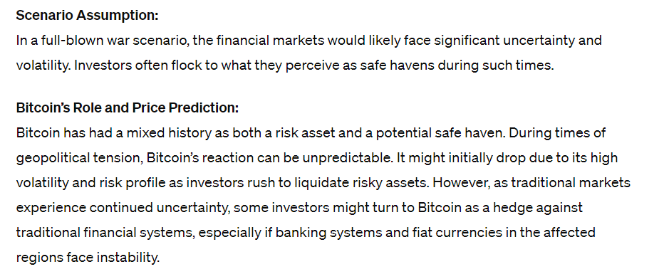 We asked ChatGPT what will be Bitcoin price if Israel-Iran conflict escalates