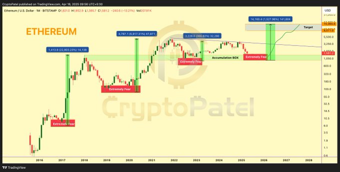 Analyst Crypto Patel noted that the current Ethereum has reached the “fear” phase, which in the past has been associated with a surge in prices. In other fear-based periods, Ethereum’s returns have been 22,800%, 5,917%, and 366%. Such returns suggest that for those with a long-term perspective, the current turbulence may provide an opportunity to achieve high long-term returns.