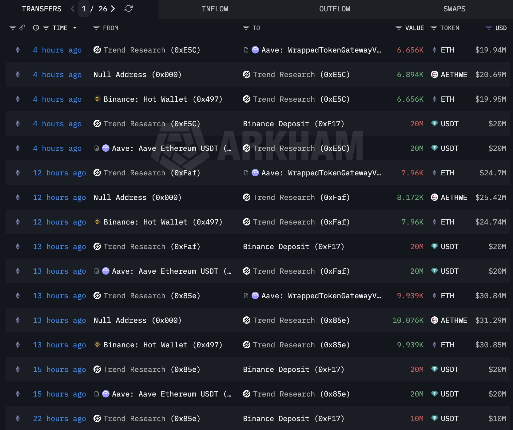 Blockchain data shows that Trend Research, a well-known institutional wallet, has aggressively increased its Ethereum exposure during the downturn.