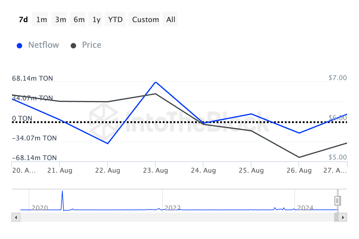 Toncoin Large Holders Netflow. Source: IntoTheBlock