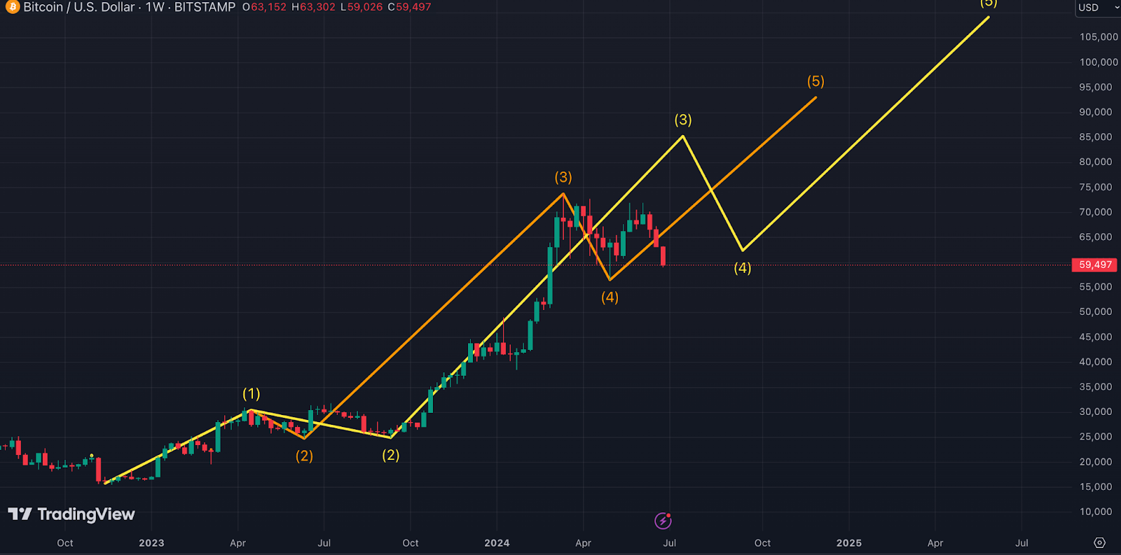 Elliott Wave theory posits a total of five waves. Based on Glover’s assessment, we’re most likely at wave three of five. Bitcoin’s definitely gone through waves one and two, as tracked by the chart. Wave three typically indicates that another pullback is necessary before bitcoin can gain the momentum to move higher.