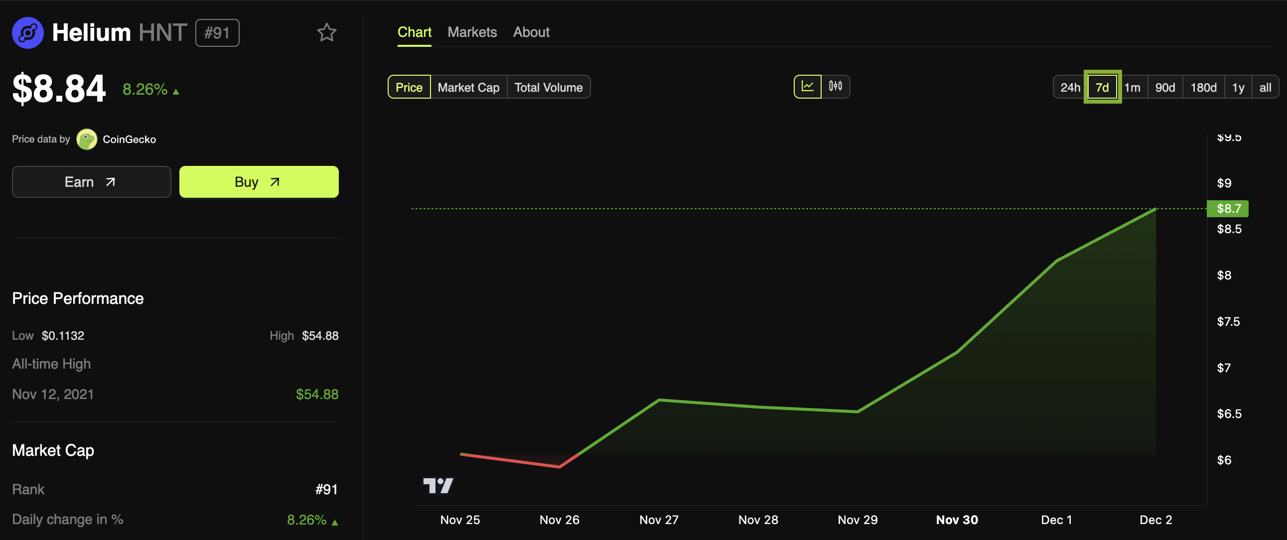 Helium (HNT) Price Performance. Source: BeInCrypto