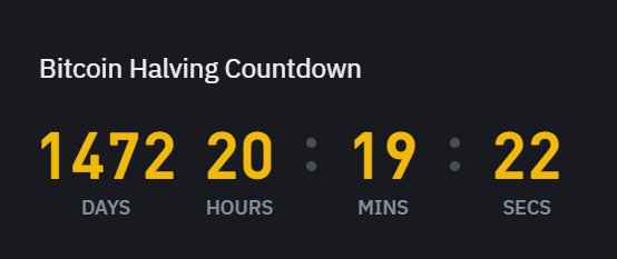 Meanwhile, according to the Binance tracker, the next halving is approximately 1,472 days away, while Coinwarz places it at 1,419 days away.