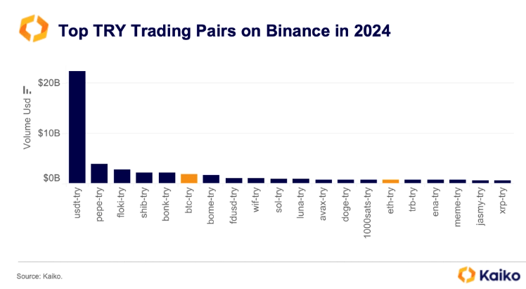 At this point, Kaiko stated that USDT-TRY was the largest trading pair in terms of volume on Binance in 2024 and the volume reached over 22 billion dollars, while PEPE-USDT was the largest pair after USDT-TRY with 4 billion dollars.