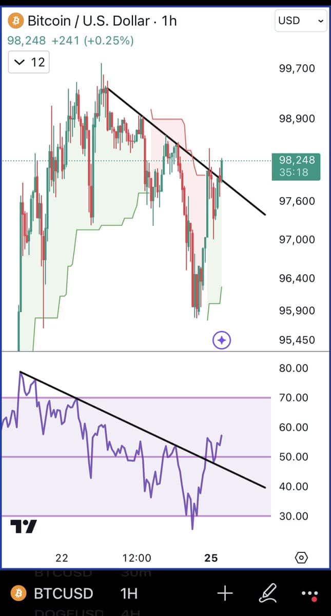 Bitcoin was trading at $98,865 by press time, gaining about 0.87% in the last 24 hours. On the weekly chart, BTC is up over 7%.
