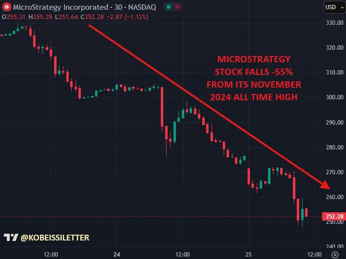 Tesla-linked ETPs are not alone in struggling, as leveraged ETFs across the board have had a tough time. The T-REX 2X Long MSTR Daily Target ETF (MSTU), an exchange-traded fund that offers investors leveraged exposure to the stock of Strategy (formerly MicroStrategy), is also down about 81% since its November peak, according to The Kobeissi Letter. In just three trading days, it was down 40%—the same devastating trend plaguing funds tied to Tesla.