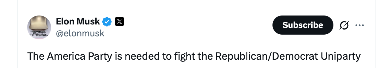 Musk spent much of early 2025 championing the Department of Government Efficiency (DOGE), only to break from the President over a massive spending bill he called financially reckless. His Independence Day declaration that a new party had been “formed” electrified supporters on X and briefly caught betting markets off guard.