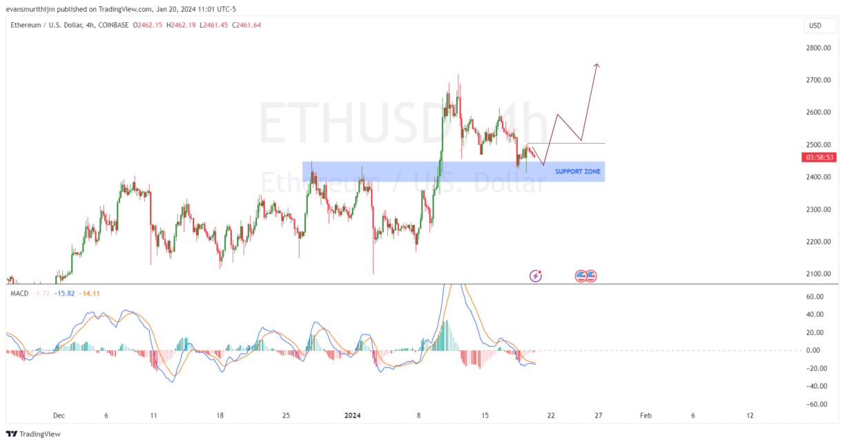 The digital currency experienced a peak at $2,717 on January 12. Over the past week, it has consistently traded above the $2,400 resistance level, indicating a strong positive trend. Ethereum’s value has shown fluctuations within a specific range, depicting a balance of strength and uncertainty. Observing these trends, Crypto analysts suggest a bullish short-term outlook, fostering a sense of optimism about Ethereum’s prospects.