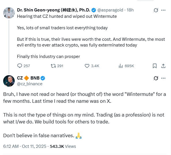 Evgeny Gaevoy, the co-founder and CEO of Wintermute, has publicly refuted rumors that began circulating early Saturday claiming the Oct. 10 market crash had “collapsed” the major market maker. In a post on X, Gaevoy insisted it was “business as usual” and that Wintermute was “perfectly fine,” directly addressing a flurry of social media reports that alleged the scale of liquidations had “rekt” the firm.